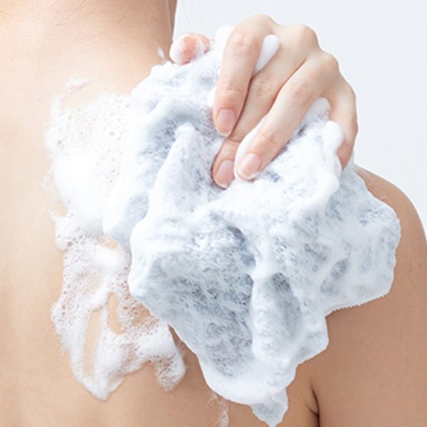 ●ナイロンの爽快シャリ感とモコモコのエアリーな泡立ちがスッキリと洗い上げてくれます。
