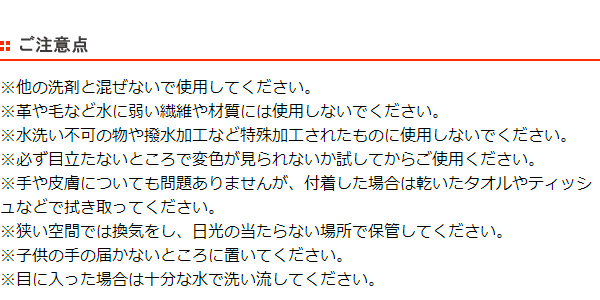 ※水洗い不可の物や撥水加工など特殊加工されたものに使用しないでください。