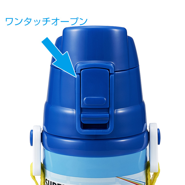 | ワンプッシュで開けやすい 水筒のフタはボタンを押すだけで開けることができるワンプッシュ式なので小さなお子様でも簡単に開けられます。 | 氷が入れやすい広口 水筒の口は広口なので大きな氷も入れやすくなっています。また、洗う時もしっかり洗えて衛生的です。 |