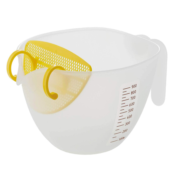 ボウル こし器付き たまごこしボウル 食洗機対応 イエロー ( ボール 卵濾し 玉子濾し 濾し器付きボール 調理ボウル 調理ボール 計量カップ キッチンツール 下ごしらえ 便利グッズ ) 【イエロー】
