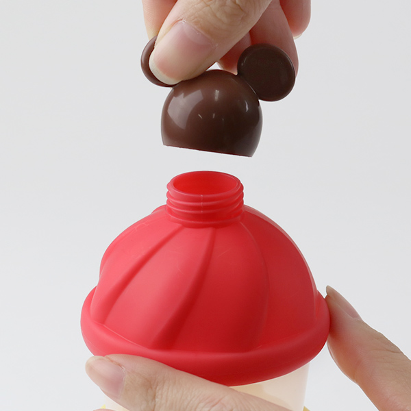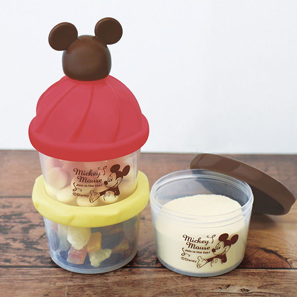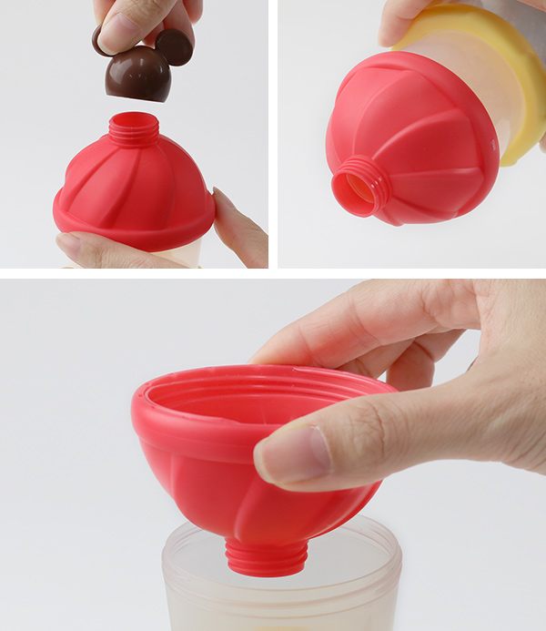 ミッキーマウスの頭はロート型のキャップになっています。粉ミルクを哺乳瓶に移す際にこぼす心配がありません。