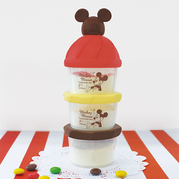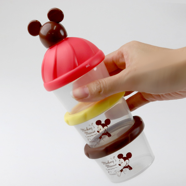ミルクケース ミッキーマウス 3回分 日本製 ( 小分けケース 80ml 粉ミルク プロテイン 持ち運び 小分け 容器 ケース ディズニー キャラクター ミッキー 3段 漏斗付き ロート 連結 保存容器 入れ物 )