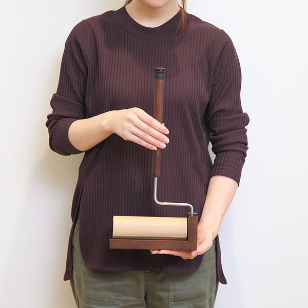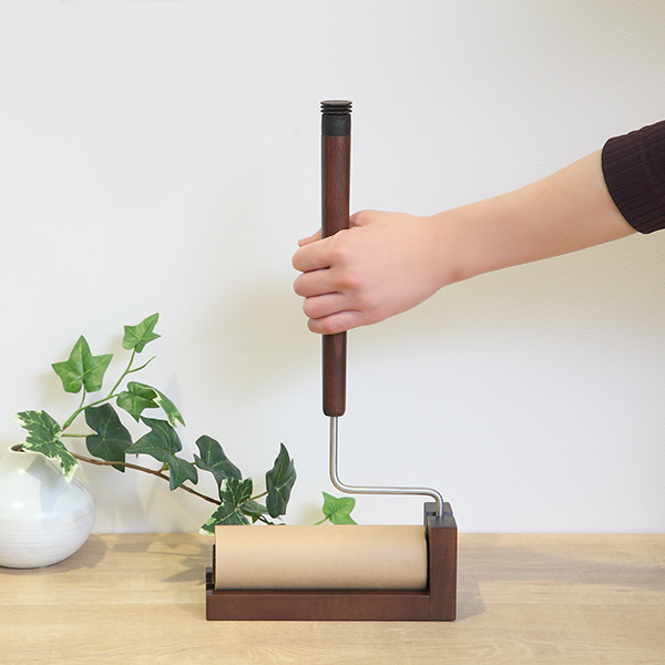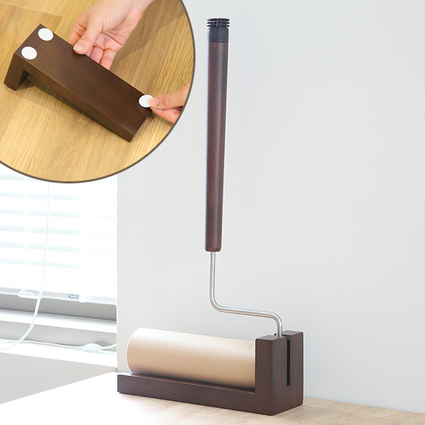粘着クリーナー ハンディ 天然木 ケース付き ( レック 粘着ローラー 木製 おしゃれ 本体 テープ ケース付 テープ幅16 インテリア 木 木目 ブラウン スタンド付き )