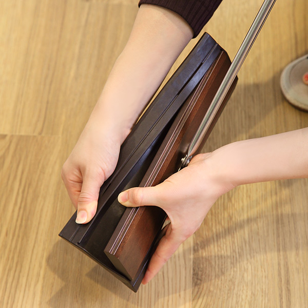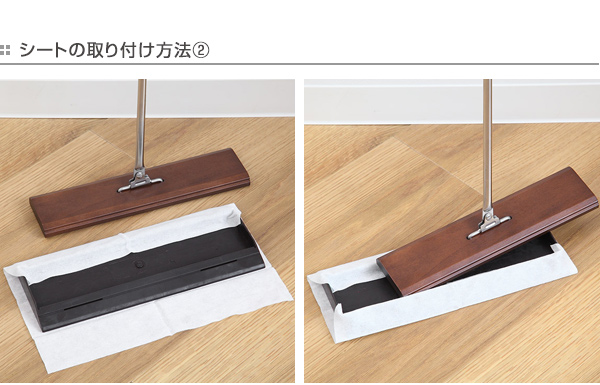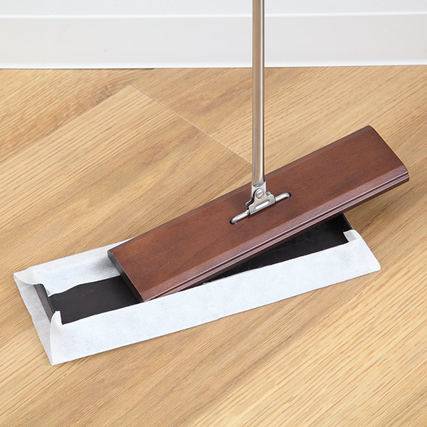 ブナの木を使用し、そのまま置いておいても生活感が出にくい高級感あるデザインのフローリングワイパーです。老舗家具メーカーの協力を得て開発した本格的な仕様となっています。