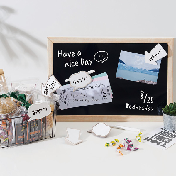ホワイトボードタイプのメッセージクリップなので、一言メモや伝えたいメッセージなどを、付属のホワイトボード用マーカーで書くことができます。