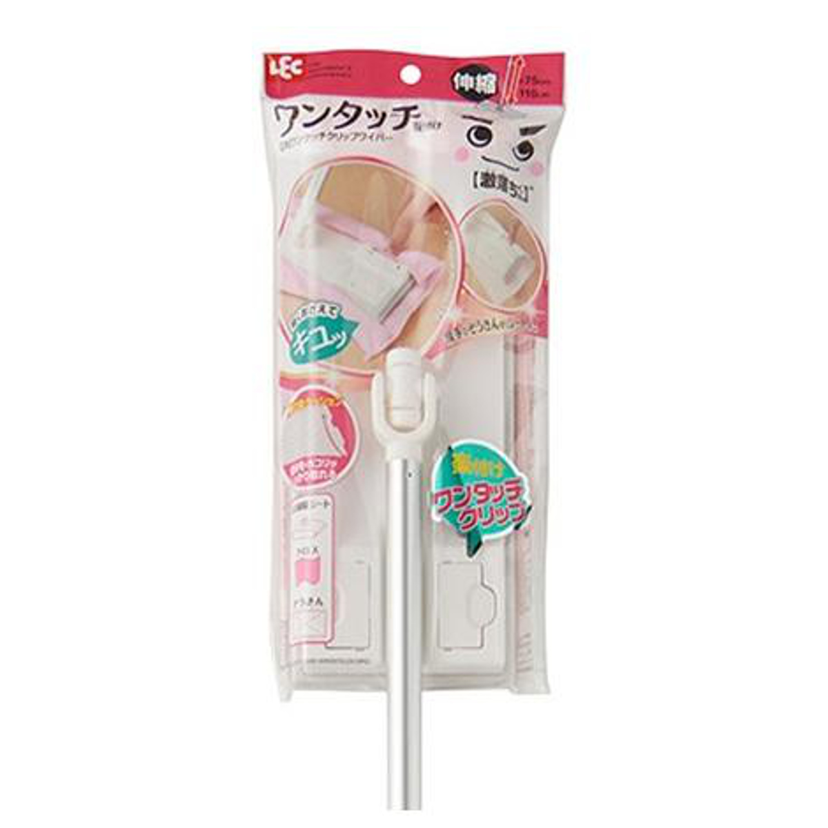フローリングから畳まで使える伸縮タイプの便利なワイパーです。ワンタッチクリップに押し込むだけでぞうきんも使い捨てシートも簡単に取り付けることができます。