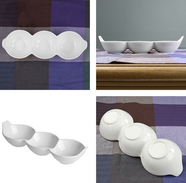 仕切り皿 3連 皿 ボウル 小鉢 おしゃれ 磁器 ( そら豆 和食器 小鉢 電子レンジ対応 薬味皿 三連皿 枝豆皿 三品皿 三つ仕切り皿 3品 仕切り )