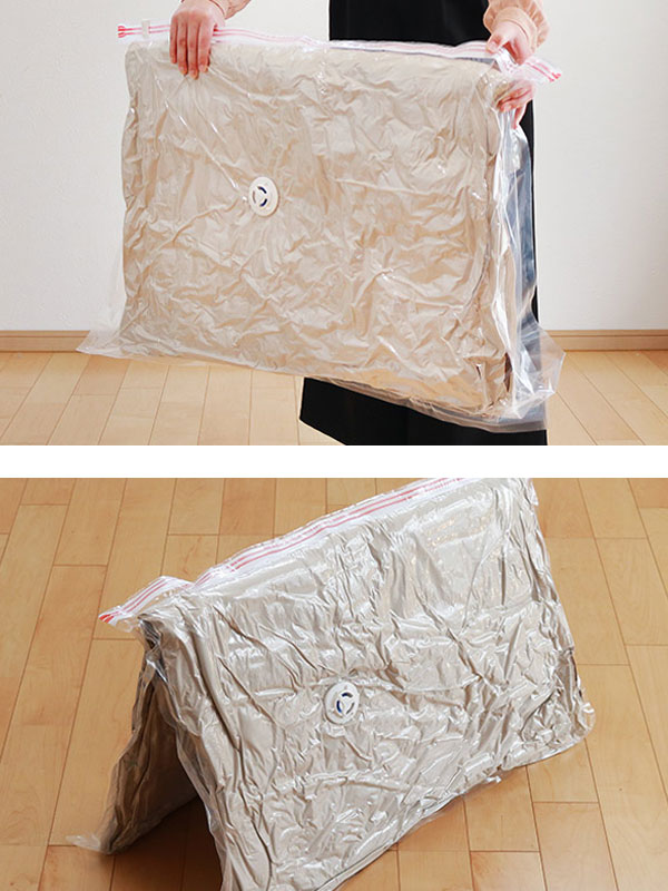 | 備考 | ■収納目安(1枚あたり) ・シングル掛けふとん:1枚・シングル毛布:2~4枚 ■短期収納用目安 ・約6ヵ月 ※圧縮の際、掃除機の種類によって使用できない物もあるのでご注意下さい。 ■防ダニ効果有効期限 開封後、約1年効果があります。 |