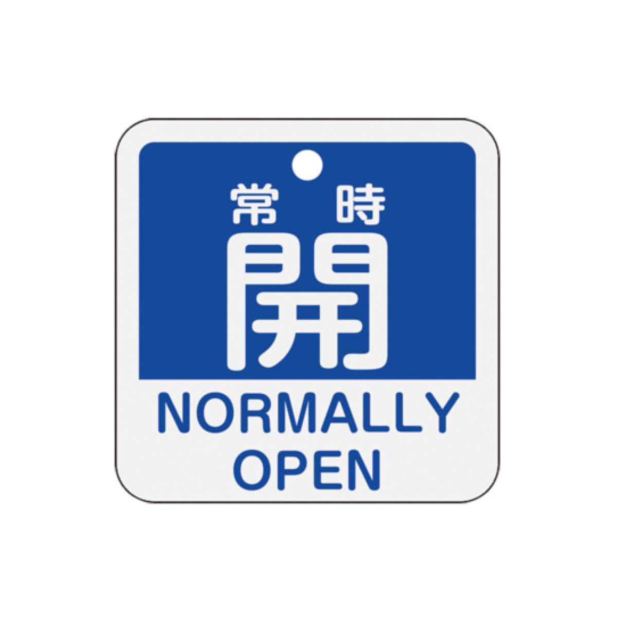 アルミバルブ開閉札 英文字入り 青 5cm 「 常時 開 」 特15-403C アルミ 日本製 ( アルミ製 両面印刷 バルブ 開閉 札 安全 フダ ふだ 表示 表示板 英語 日本語 二カ国 表記 事業所 工場 現場 作業 用品 グッズ 安全用品 )