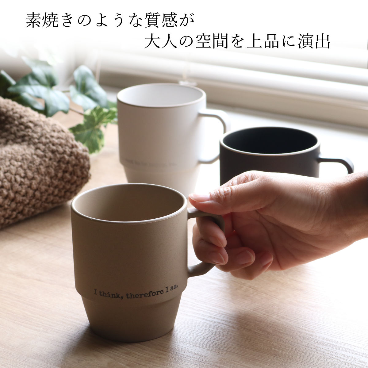 ざらっとした触り心地が特徴の、陶器のような風合い。素材には軽くて割れにくいプラスチックを採用し、見た目の上質感と扱いやすさを兼ね備えています