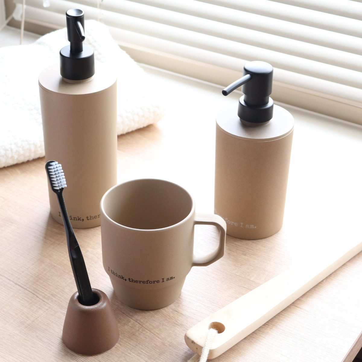 どんな空間にも馴染む、まるで陶器のような上質なうがいコップです。素焼きの様な素材がポイント。高級感溢れる大人な空間を演出します。