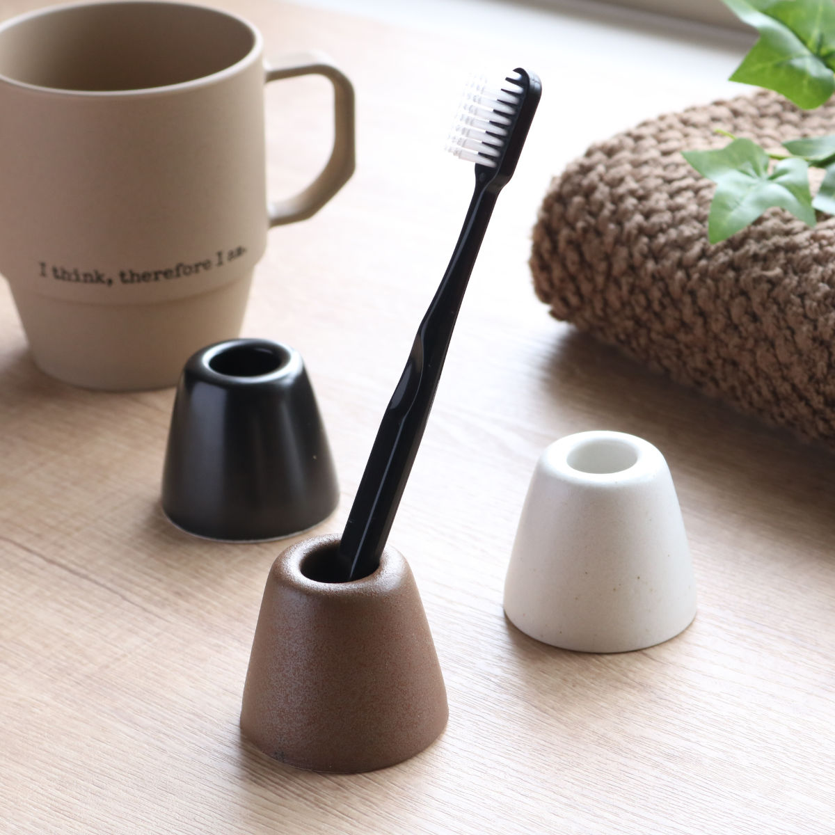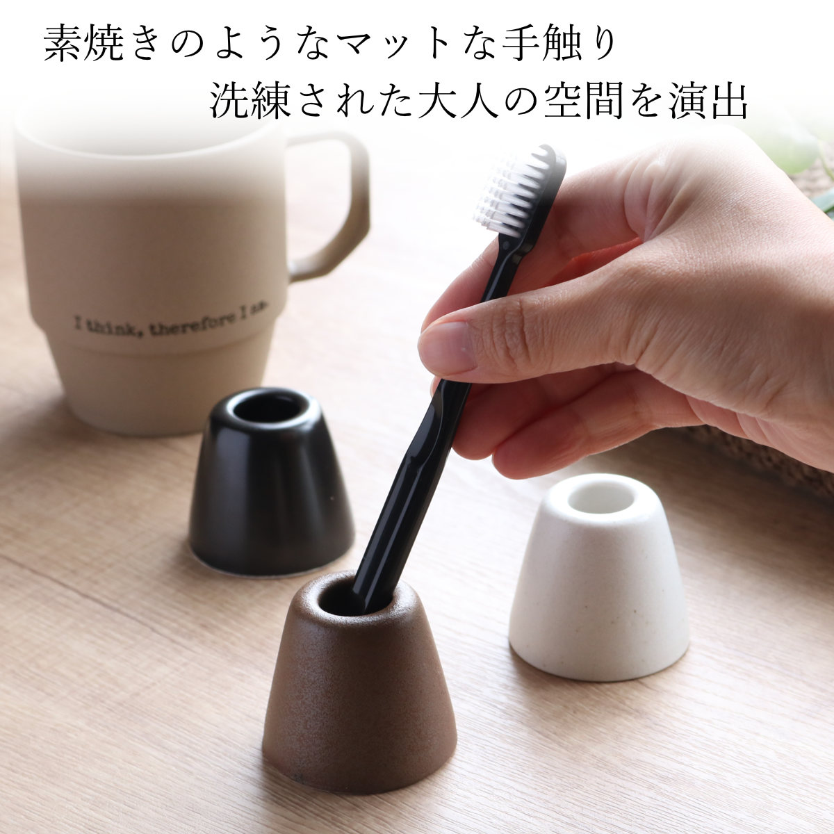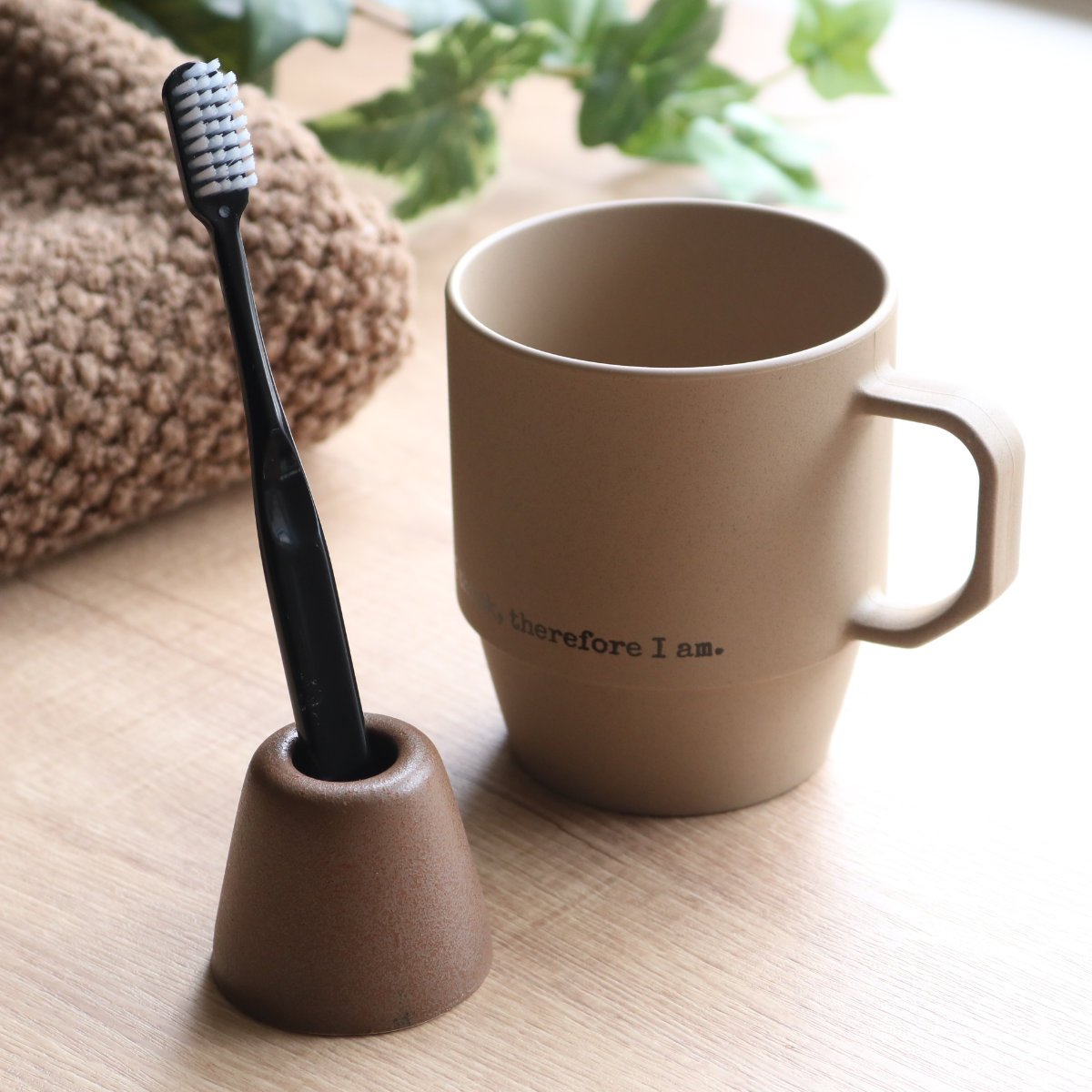 どんな空間にも馴染む、まるで陶器のような上質な歯ブラシスタンドです。素焼きの様な素材がポイント。高級感溢れる大人な空間を演出します。