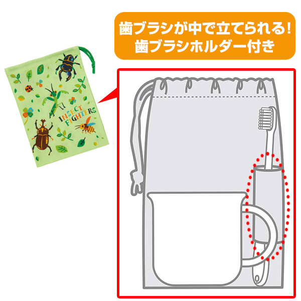 コップ袋 インセクトファイター 歯ブラシホルダー付 子供 ( 給食袋 幼稚園 保育園 巾着 昆虫 虫 子供用コップ袋 子ども用 お弁当グッズ キッズ ランチグッズ 給食 入園準備 通園 通学 )
