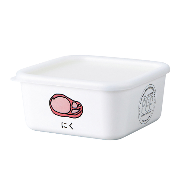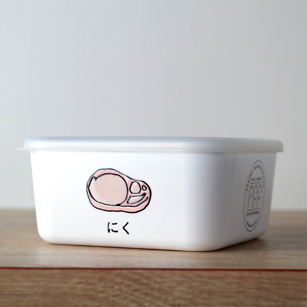 ●ベーシックでありながら、今の暮らしに馴染むニュアンスを備えた白地の保存容器「にく」450mlです。