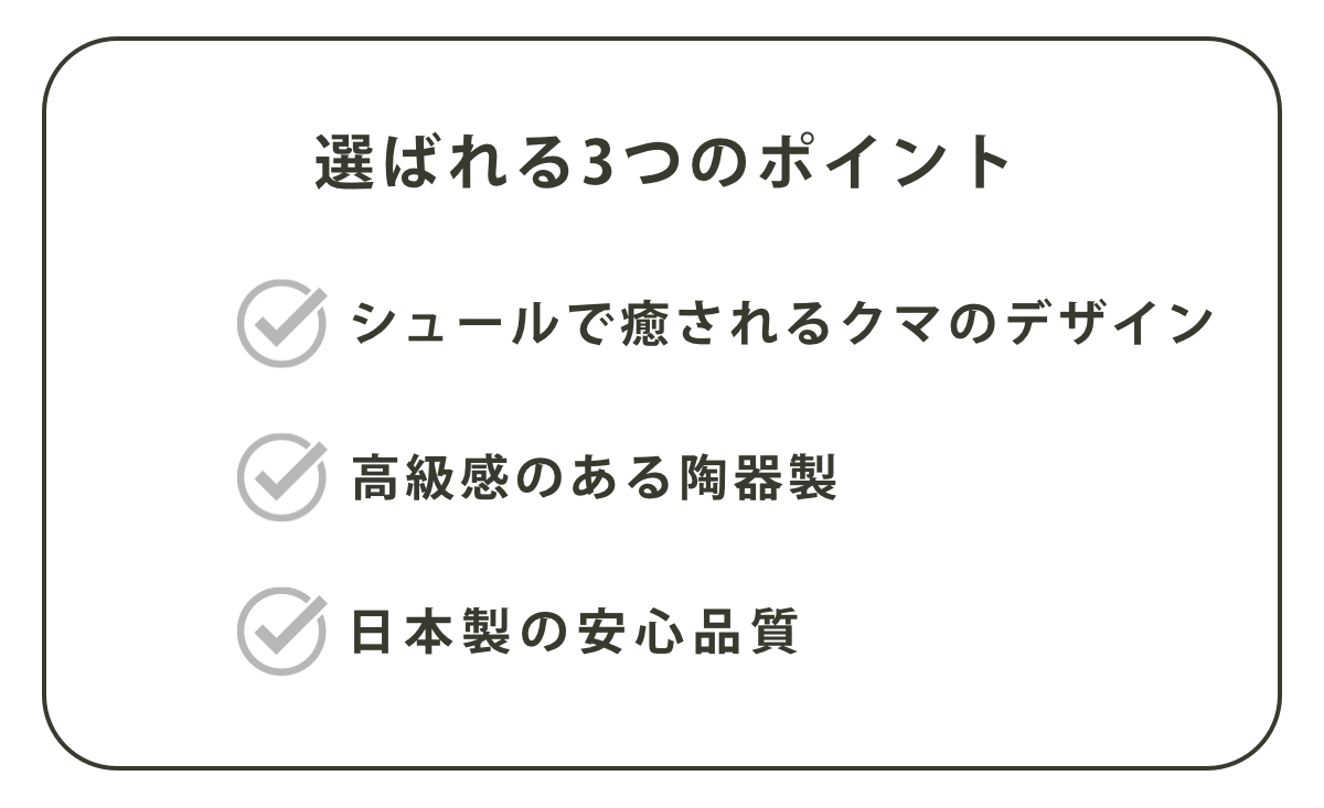 しっかりとした重みと質感のある陶器素材を使用。安っぽさがなく、インテリアとしても映える仕上がりです。