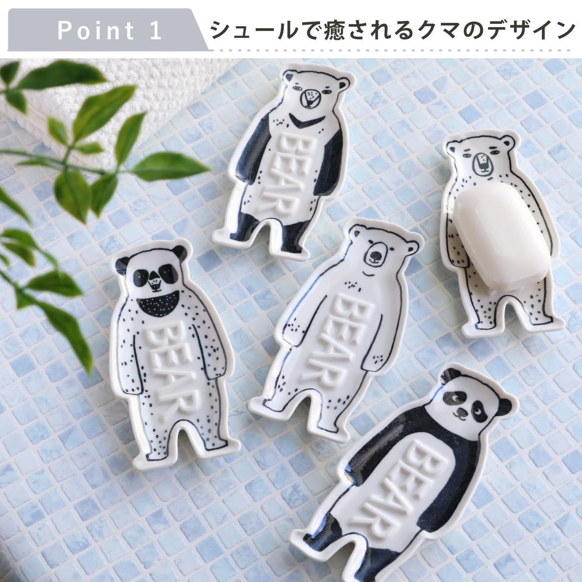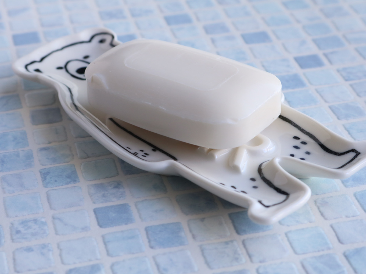 石けん皿 BEAR ソープディッシュ ソープトレイ 石鹸置き 石鹸トレイ 日本製 ( 石鹸皿 ソープトレー 石けんトレー くま ソープ せっけん 洗面所 洗面収納 バス収納 陶器 皿 置き型 クマ パンダ ) 【PolaeBear】