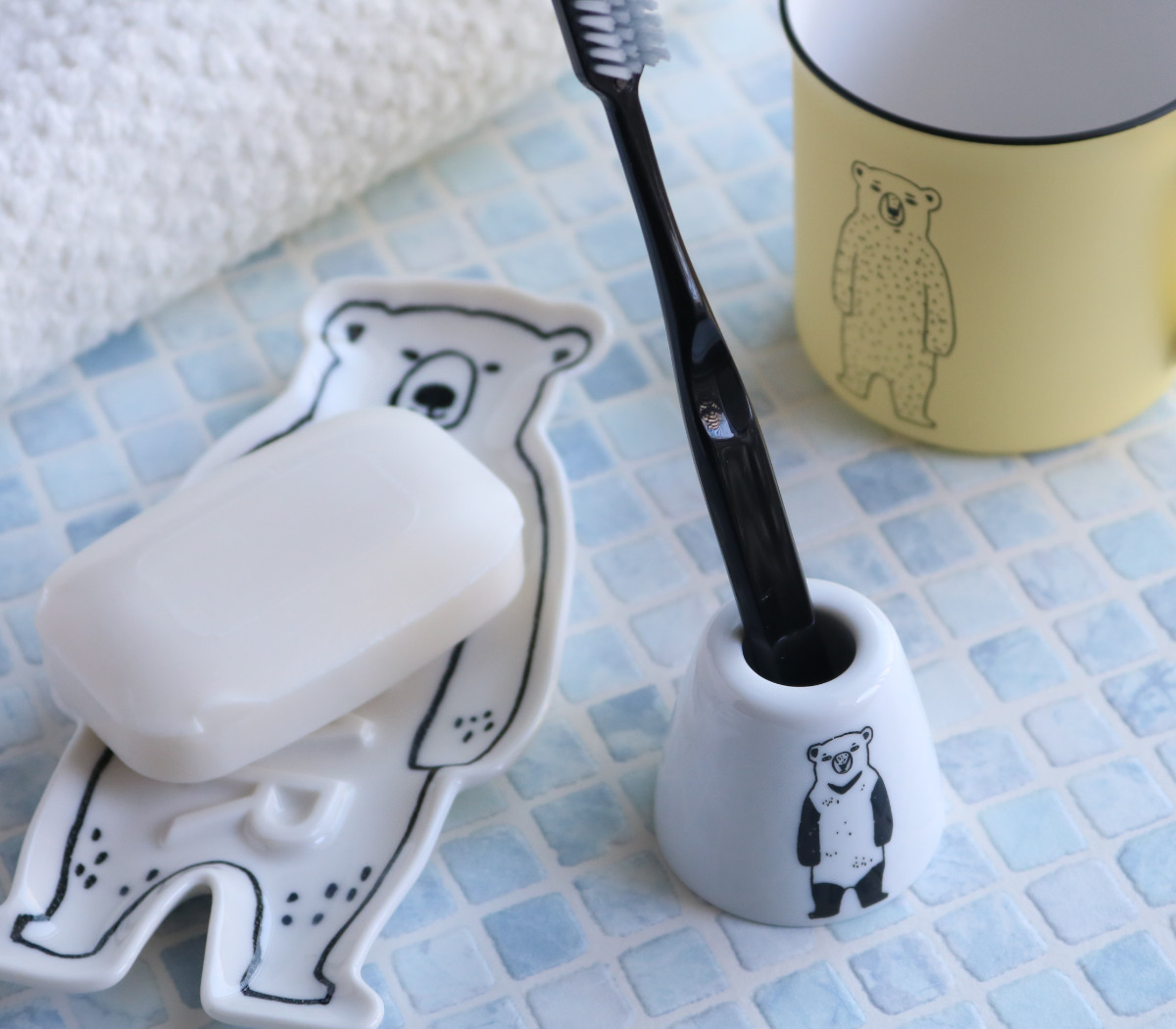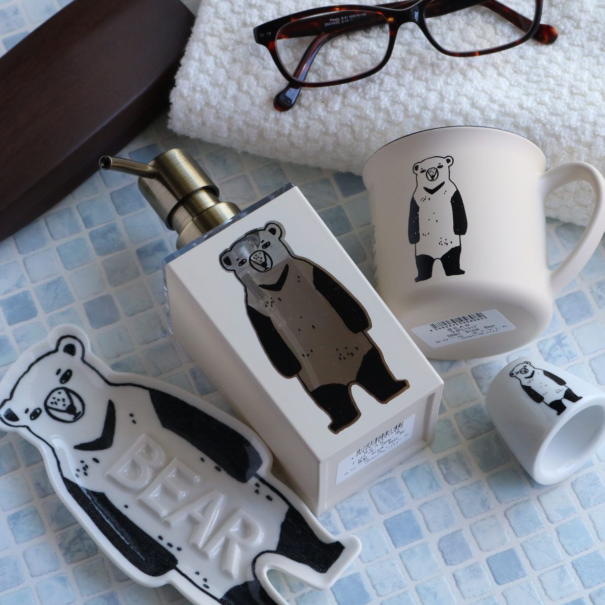 ついシリーズで揃えたくなる、お洒落なクマのデザインの「BEAR」シリーズ。何とも言えない可愛さのクマ達が、洗面所を楽しく彩ってくれます。