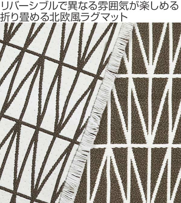 表と裏で色が反転するリバーシブルデザインです。ひっくり返すだけで異なる雰囲気が楽しめるので、インテリアの雰囲気や模様替えなどに合わせて使い分けることができます。ナチュラルなカラーに北欧風の温かみのあるデザインが、お部屋にさりげないアクセントを加えます。