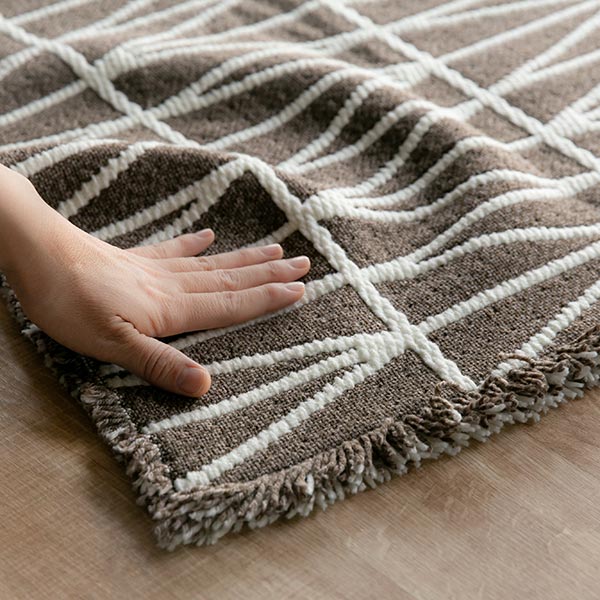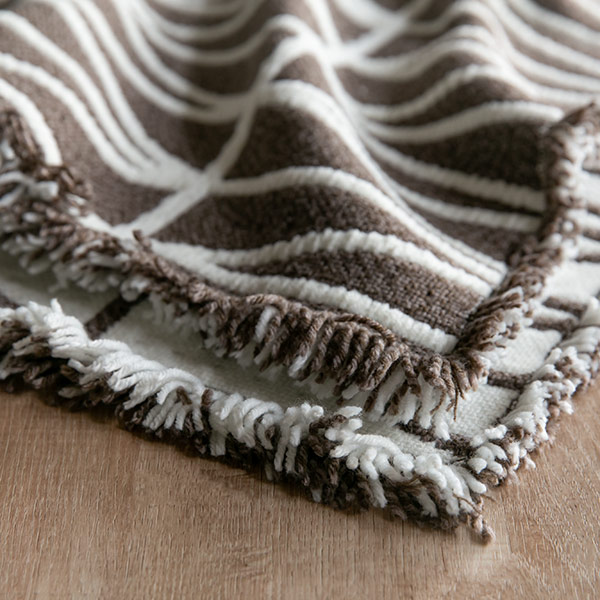 | フリンジ付き ラグの端にはフリンジが付いており、さりげなくデザイン性を高めます。 | 洗濯機で丸洗いOK 折り畳んで洗濯ネットに入れ、洗濯機で丸洗いできるのでいつも清潔にお使いいただけます。 ※ドラム式洗濯機はご使用になれません。 |