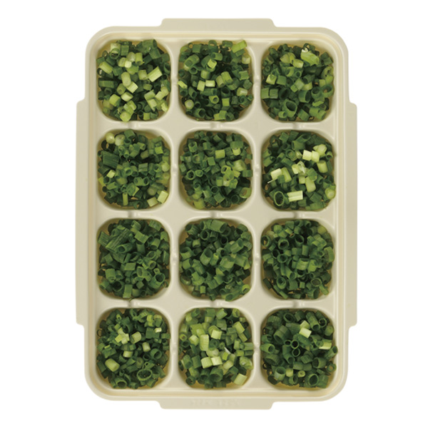 ねぎや生姜など小さい薬味にぴったりの15ml×12ブロック。フタ付きなのでラップを使わず保存できるからエコで経済的です。食洗機にも対応し、繰り返し使える便利なアイテムです。