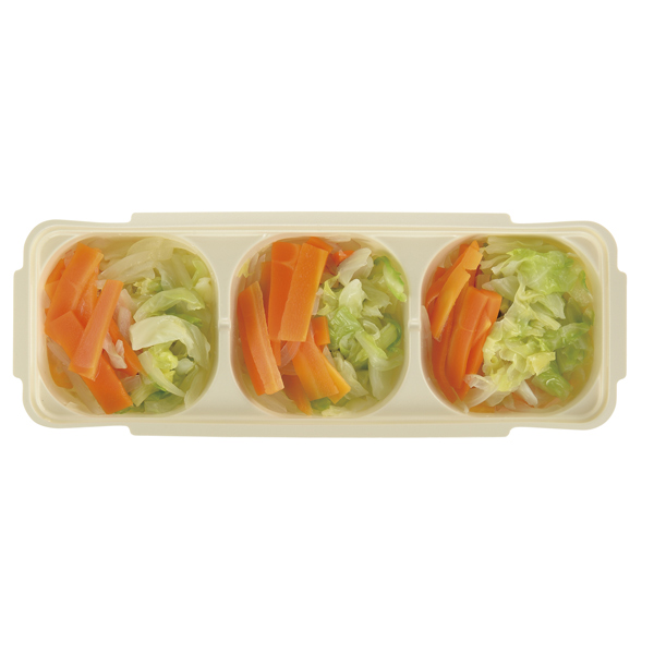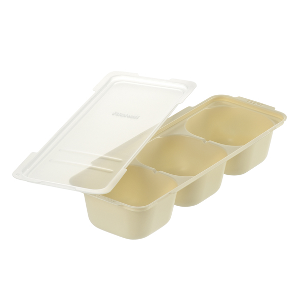 弁当カップや野菜玉、三色丼の具、ハンバーグにぴったりの135ml×3ブロック。フタ付きなのでラップを使わず保存できるからエコで経済的です。食洗機にも対応し、繰り返し使える便利なアイテムです。