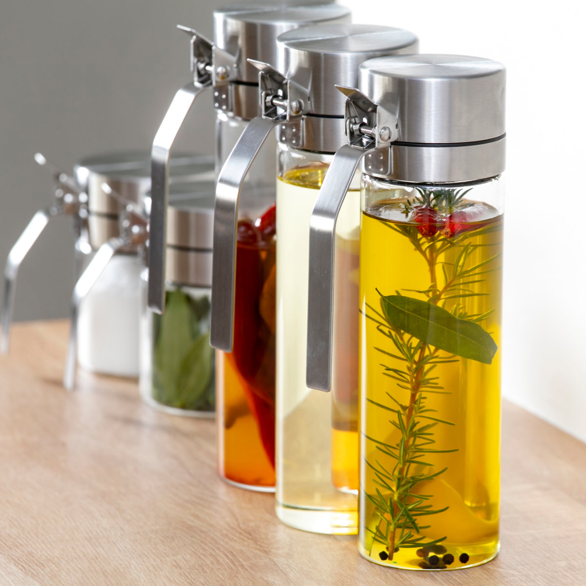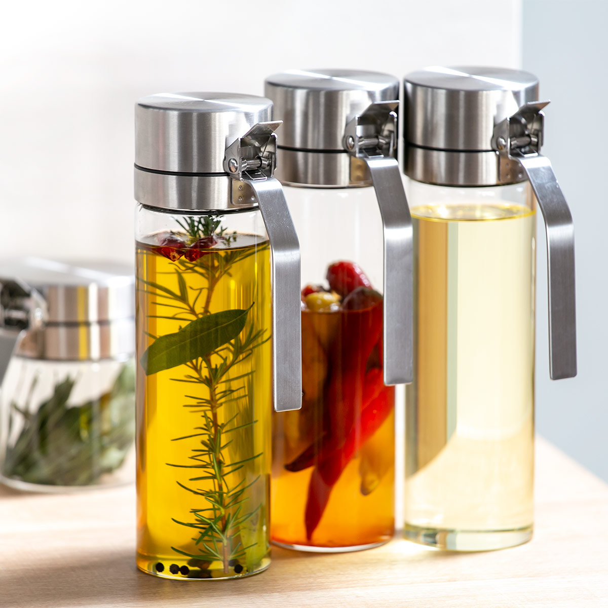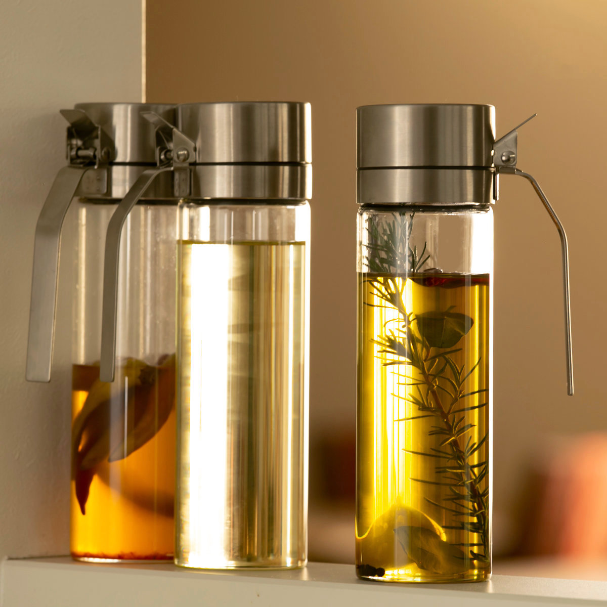 オイルの大敵である酸化を防いでくれる、ガラス製オイルボトルです。使い勝手抜群のスタイリッシュなデザインは、キッチンのみならず食卓でもデイリーに活躍。オイルの鮮度を保ち、毎日のおいしい食事をアシストします。