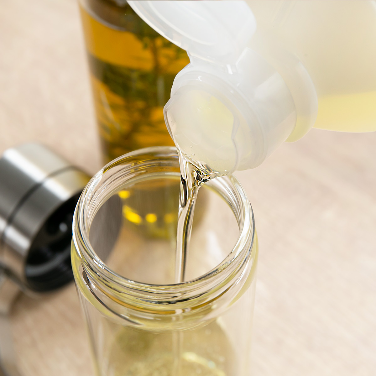 口が広く作られているため、オイルの補充もスムーズです。お好みのハーブを入れたフレーバーオイルや、自家製ドレッシングも作りやすいです。
