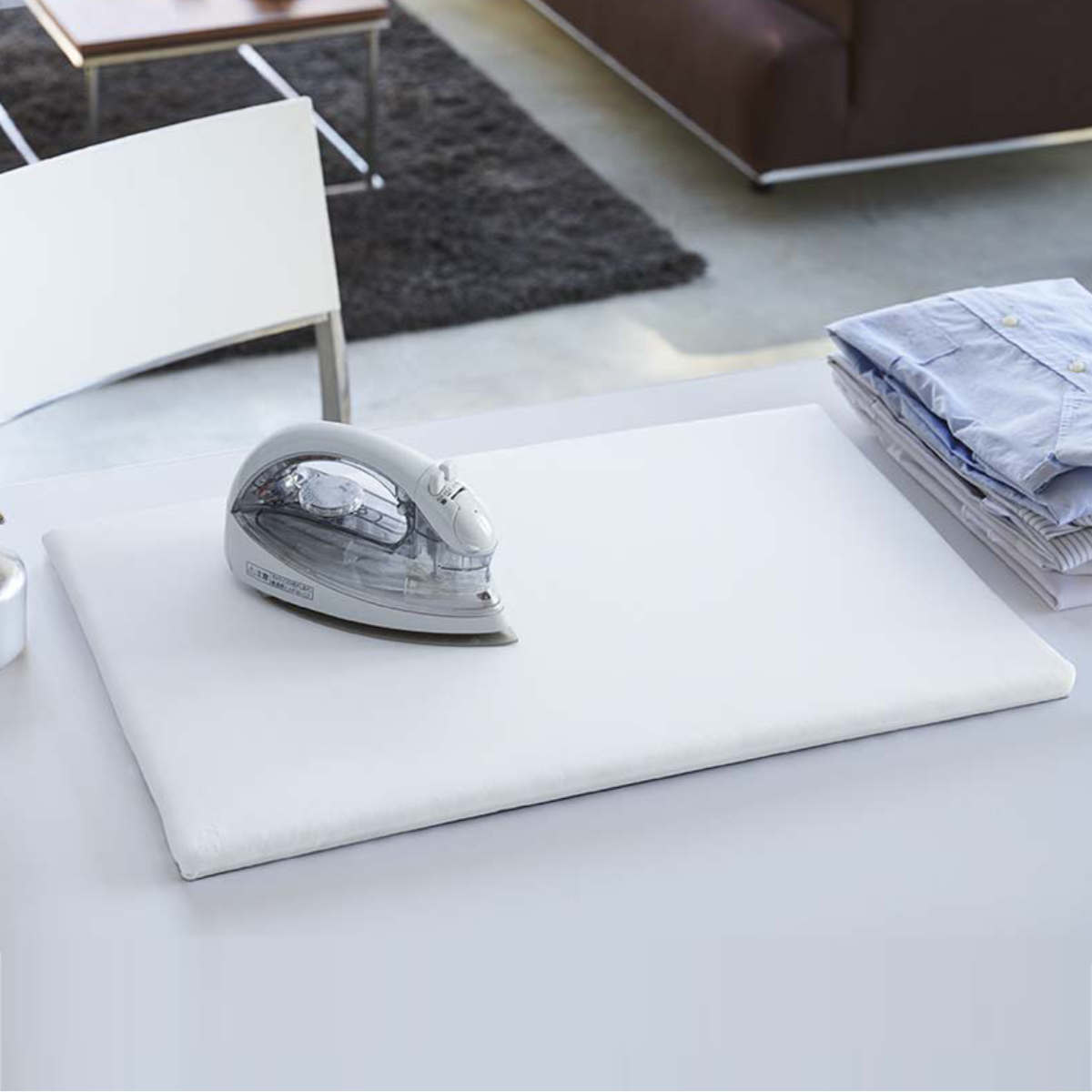 脚無しタイプのシンプルな平型アイロン台です。脚が無いので、テーブルや台の上等、お好きな場所に置いてアイロン掛けができます。基本の四角いかたちのアイロンはちょっと使いたい時にさっと使えて便利です。