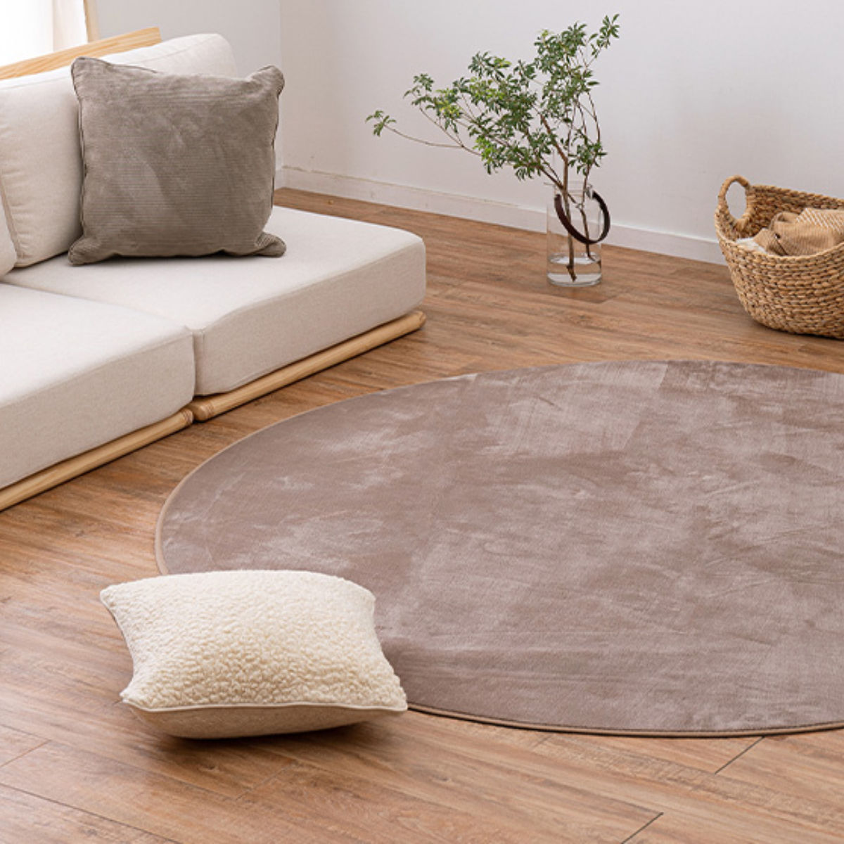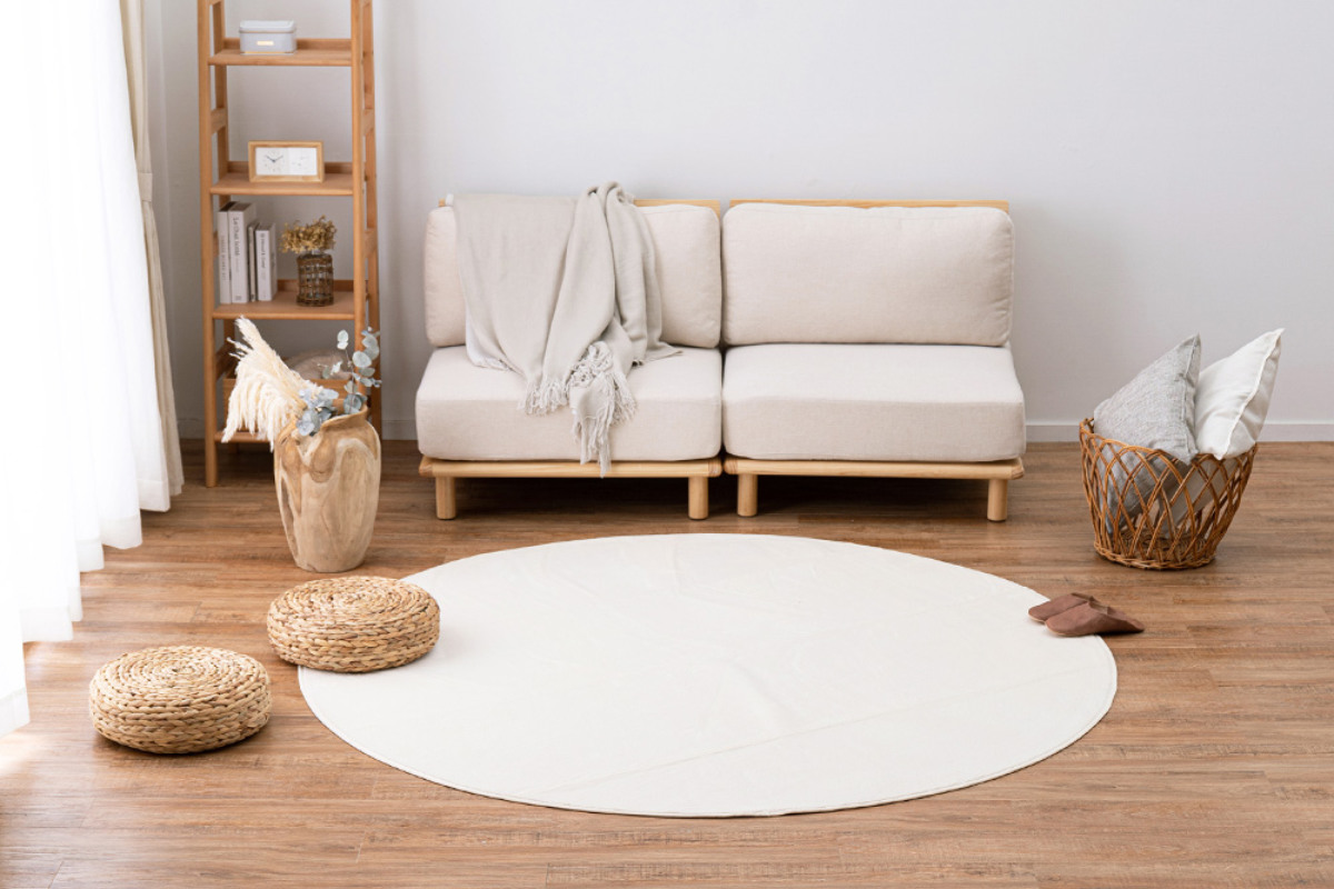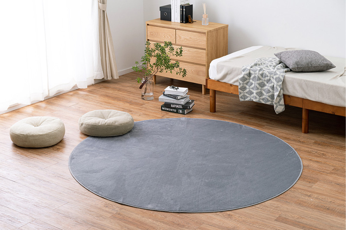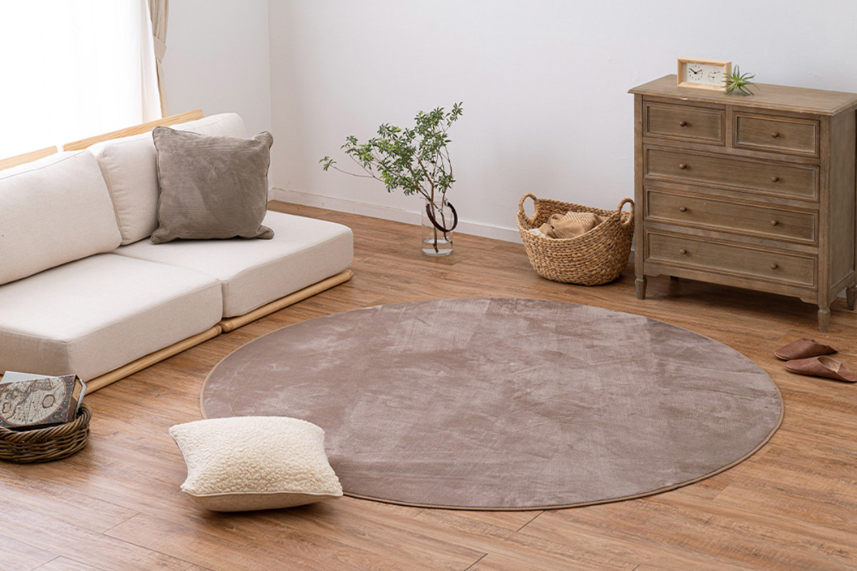 円形のラグはインテリア性が高く、センターラグとしてお部屋を彩ります。8畳のお部屋にちょうどいいサイズで、ソファー前にもおすすめです。