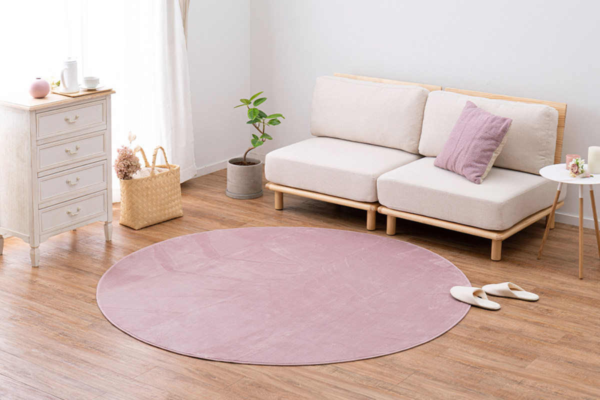 ラグマット メレンゲタッチラグ 185×185cm 円形 ピンク ( ラグマット カーペット 絨毯 軽い コンパクト お手入れ 簡単 手軽 洗える 洗濯機 丸洗い 滑り止め ホットカーペット対応 床暖対応 ) 【ベージュ】のレビュー