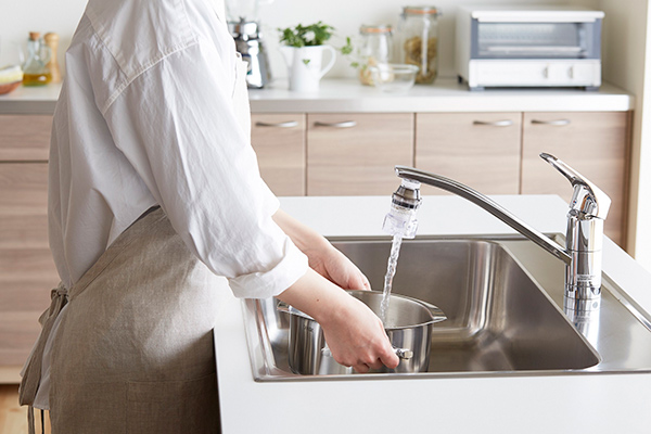 水流はシャワー・ストレートを簡単に切り替えられます。シャワーで洗うと短時間で効率的に洗え、節水効果も期待できます。