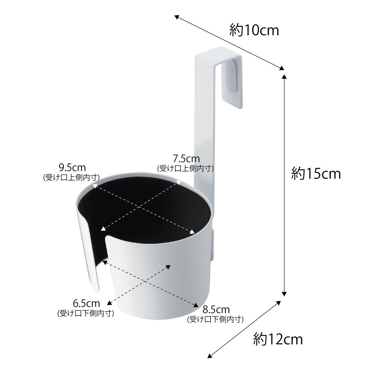 | サイズ | 約 幅10×奥行12×高さ15(cm) 【ホルダー内寸】 受け口(上側):幅9.5×奥行7.5(cm) 受け口(下側):幅8.5×奥行6.5(cm) |