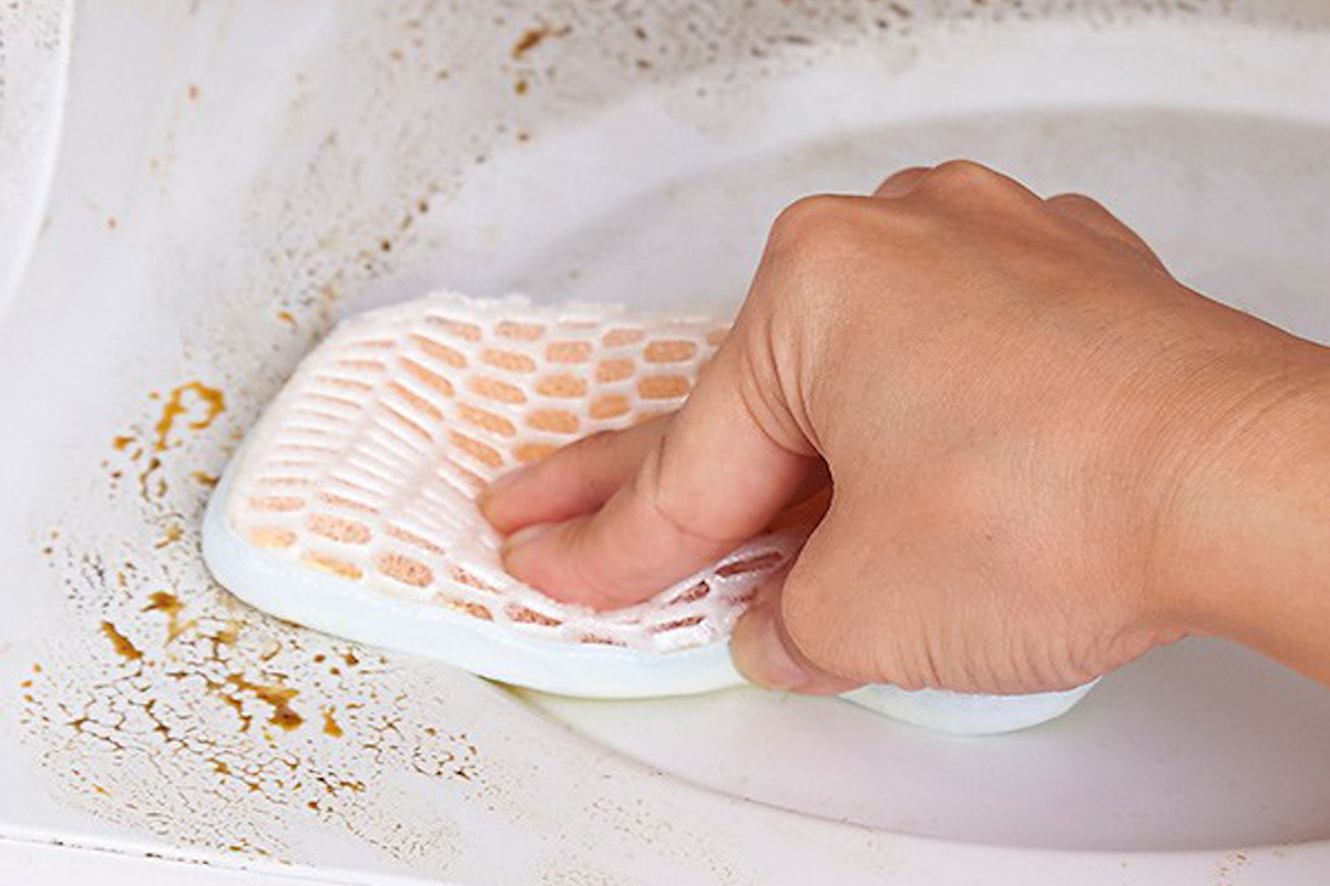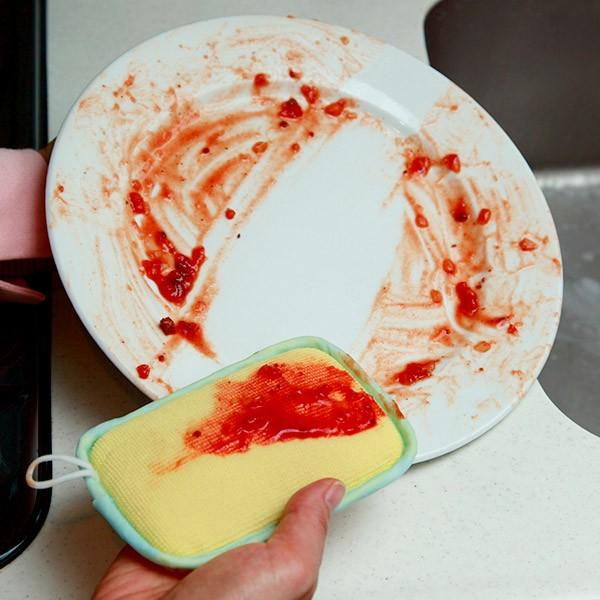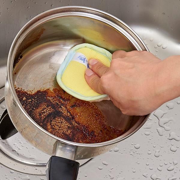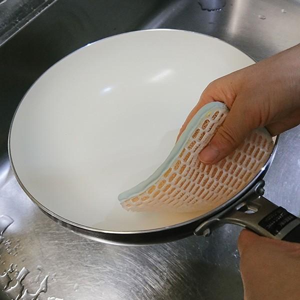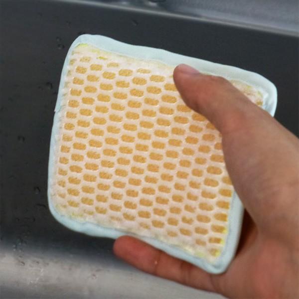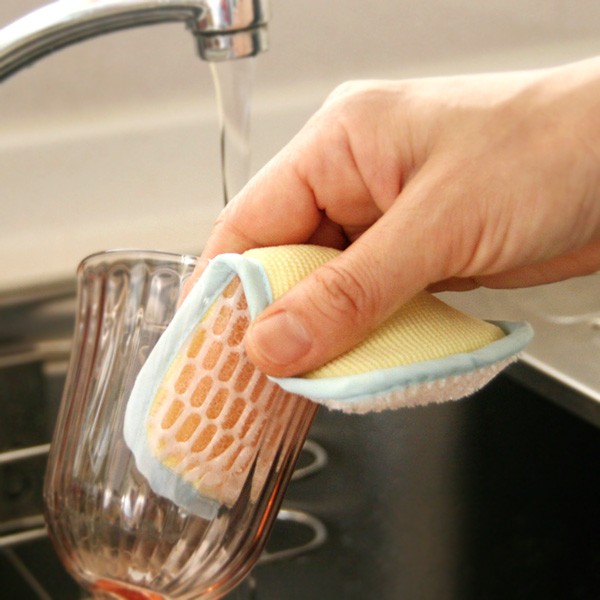 頑固な汚れも仕上げにも ダブル効果のキッチンスポンジ