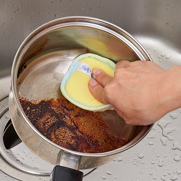 ●しつこい汚れや大量の汚れは、あらかじめぬるま湯に漬けておいたりヘラなどで汚れをある程度取り除いておくと汚れが落ちやすくなります。