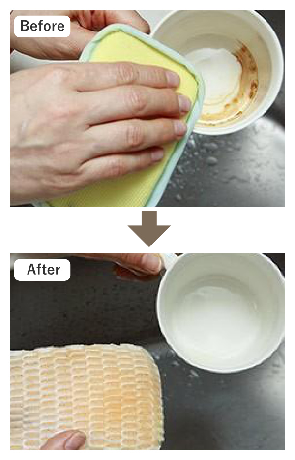 ●通常の汚れには洗剤を使わず、水だけで汚れを落とせます。
