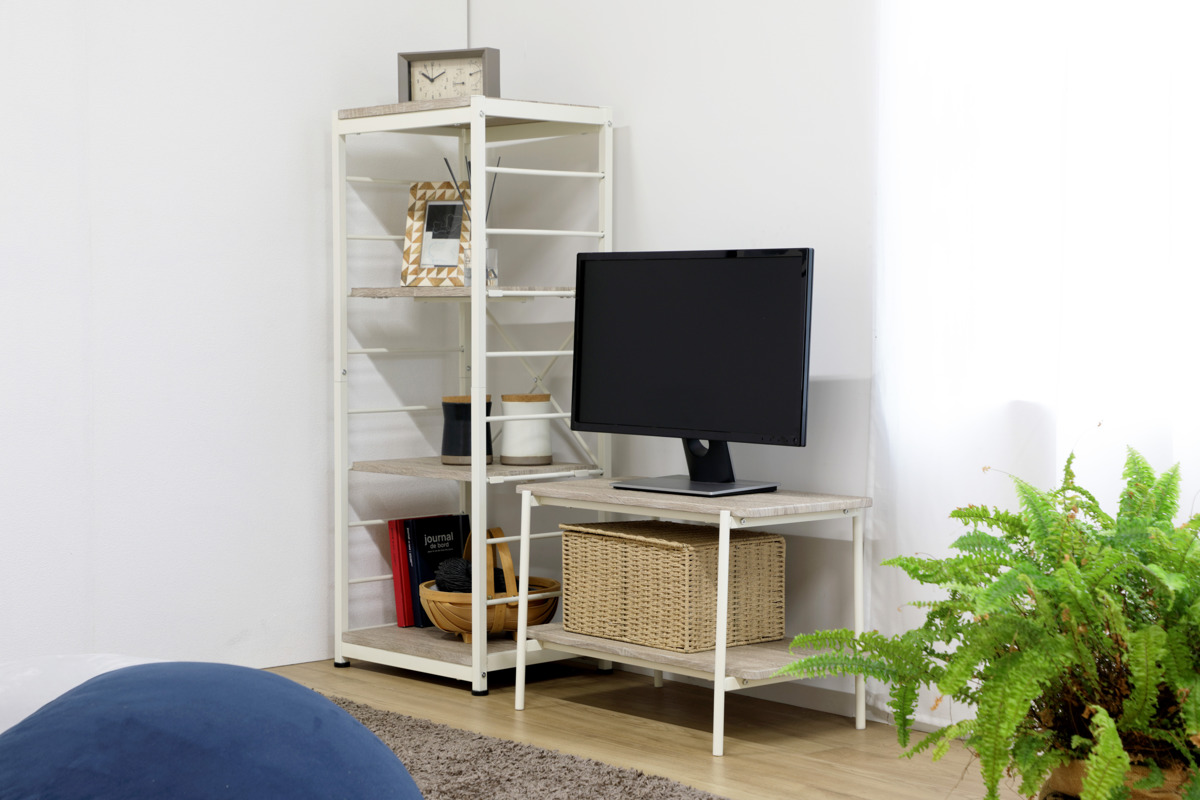 お気に入りの小物や観葉植物などを飾って、自分好みにディスプレイすることができます。AV機器やゲーム機、ルーター等も一か所にまとめて設置し、使い勝手よくアレンジしていただけます。背板と側板がないので、機器の熱がこもりにくく、配線も簡単です。