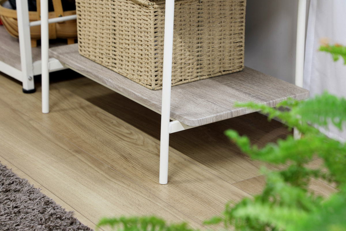 ホワイトカラーのフレームと柔らかな色味の木目調天板。お部屋に馴染みやすく、やさしい印象を与えてくれます。