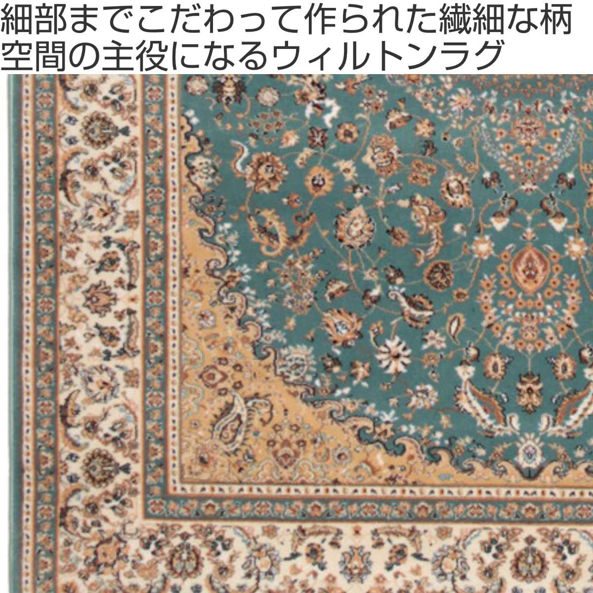 美しく繊細な柄を描いたトルコ製ウィルトンラグです。時代を超えて愛され続けるエレガントなデザインで、お部屋を上品に演出してくれます。