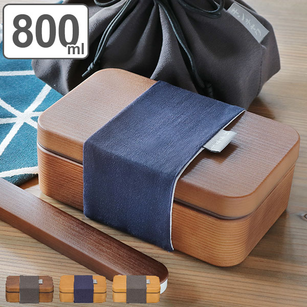 弁当箱 800ml 1段 ハラマキ 木目長角弁当 ( お弁当箱 ランチボックス レンジ対応 食洗機対応 一段 大容量 大人 男子 レンジOK 食洗機OK ランチバンド付き 弁当 お弁当 木目 おしゃれ 男性 日本製 ) 【ナチュラル×グレー】