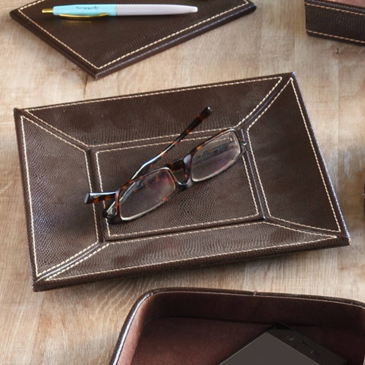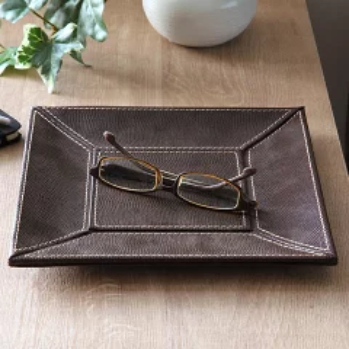 トレーの内側はステッチを施し、おしゃれでスタイリッシュなデザインです。傷や音を気にせず、安心して大切な小物を置けます。
