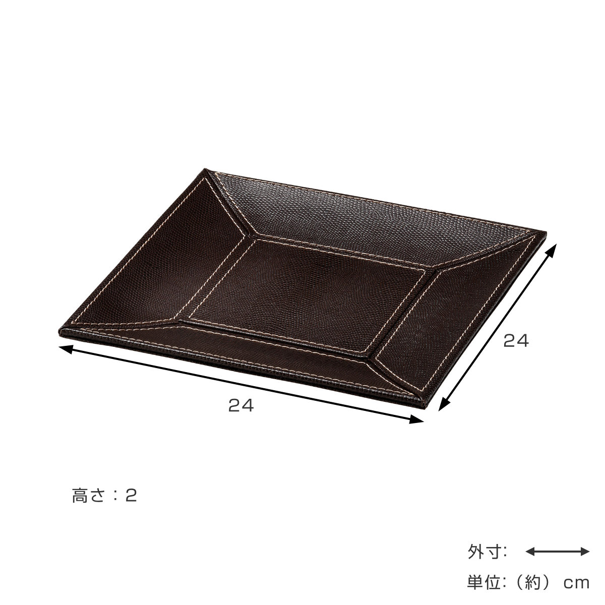 小物トレー 正方形 トレー レザー風 キャッシュトレー 幅24×奥行24×高さ2cm ( 小物入れ トレイ 卓上トレー アクセサリートレイ ペン めがね メガネ置き 腕時計 ペン置き メガネ 雑貨 インテリア おしゃれ )