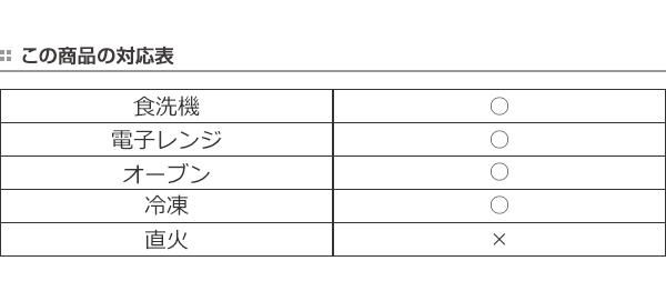 | 備考 | ※耐熱温度:250度、耐冷温度:-40度 ※電子レンジ・オーブンOK、食洗機・乾燥機OK ※お客様のお使いのモニター設定、お部屋の照明等により色味が実際と異なる場合があります |