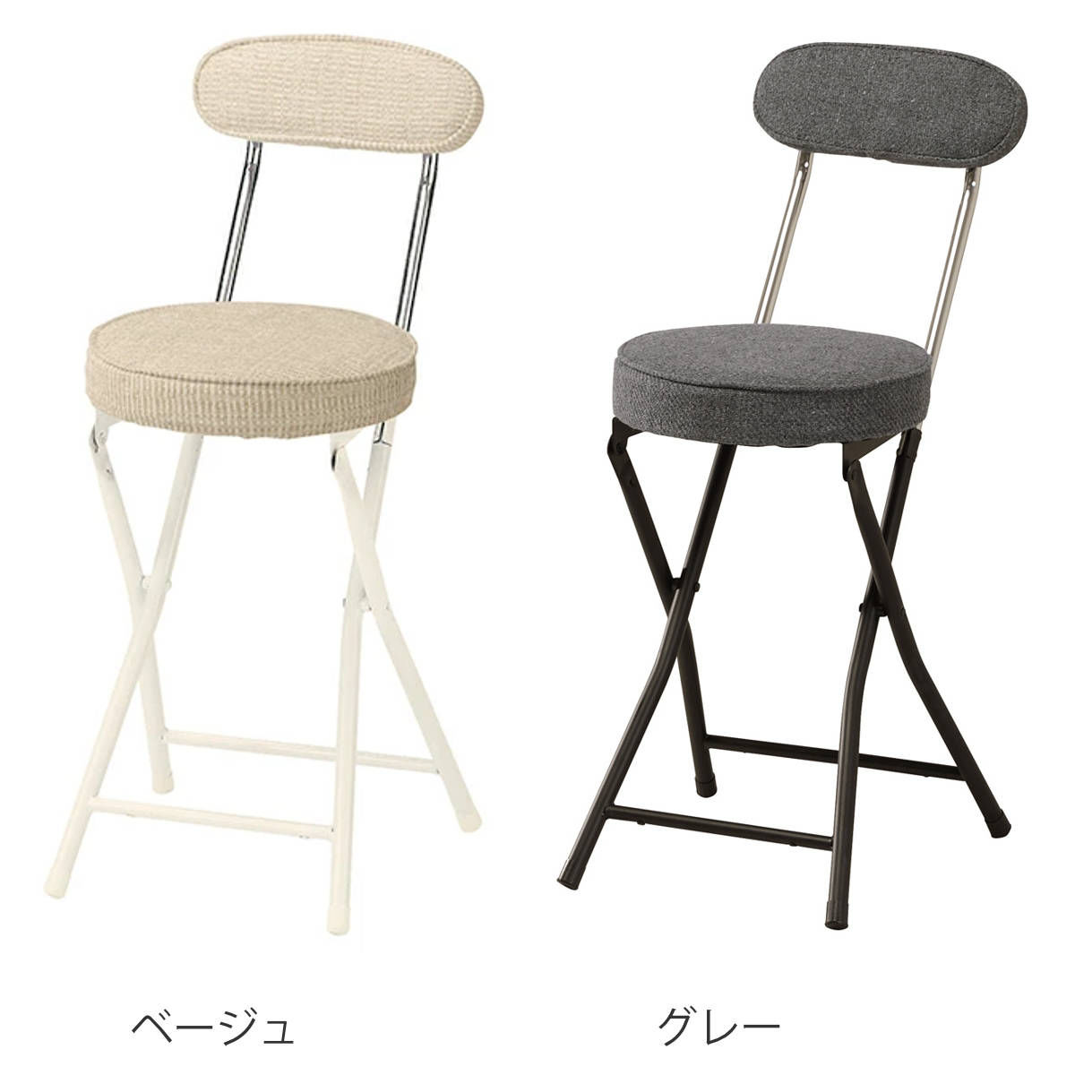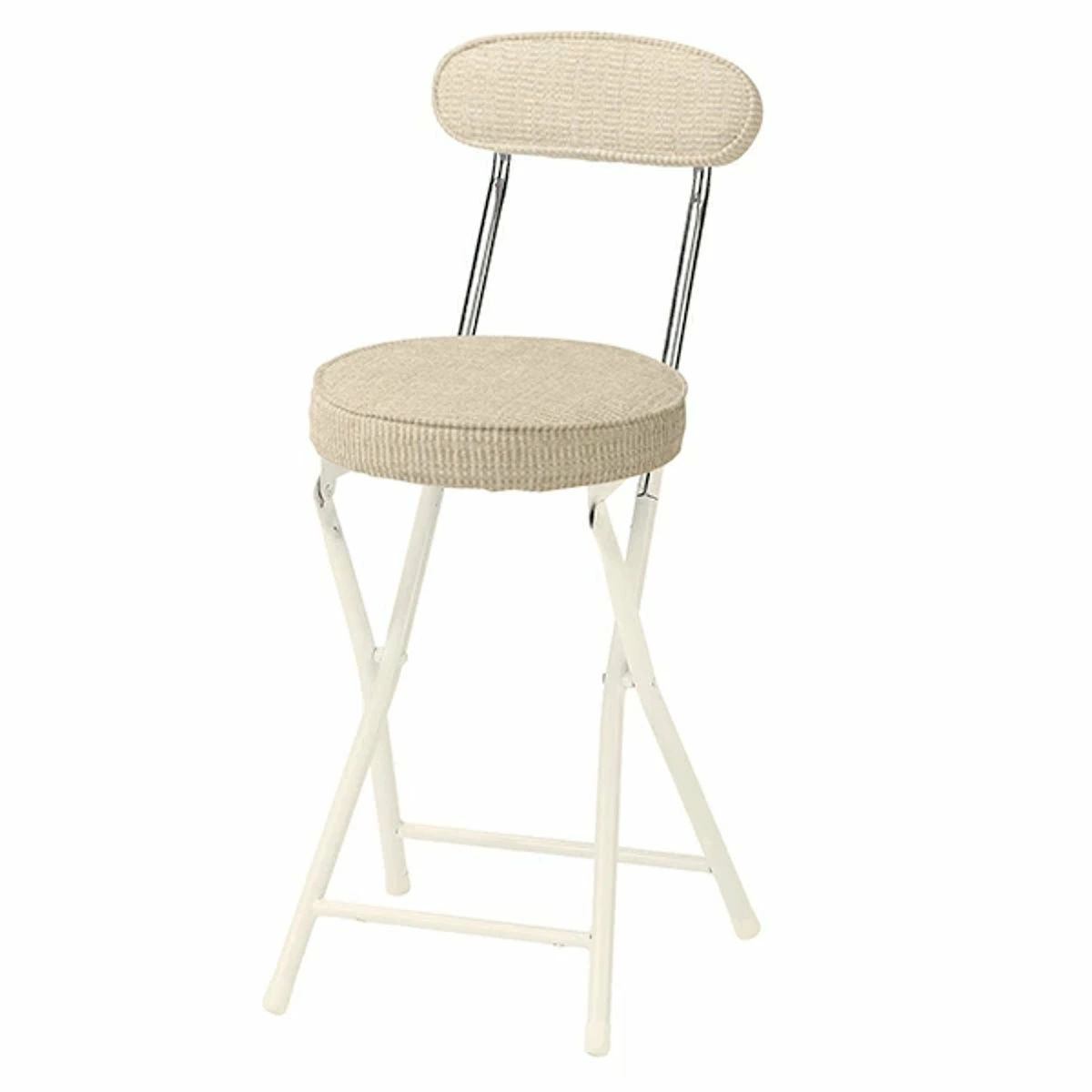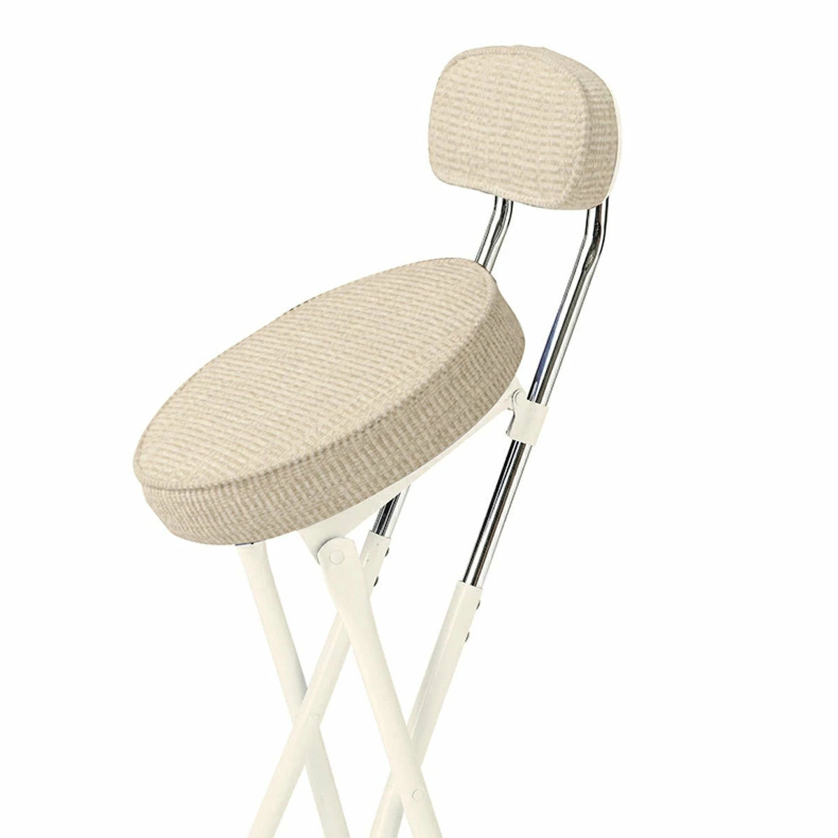 スツール 4脚セット 高さ約50cm 背もたれ付き フォールディングスツール 折りたたみ椅子 ( ファブリック 布 丸 ラウンド 椅子 セット 折りたたみイス 来客用 キッチンチェア 50センチ おしゃれ ) 【ベージュ】