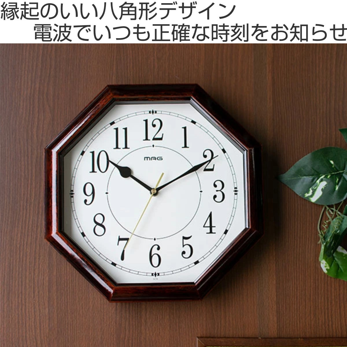 掛け時計 電波時計 ネオオクターゴ ( 壁掛け時計 時計 インテリア 寝室 ウォールクロック 八角形 木目調 高級感 アンティーク調 電池式 連続秒針 電波 リビング ダイニング 部屋 居間 )