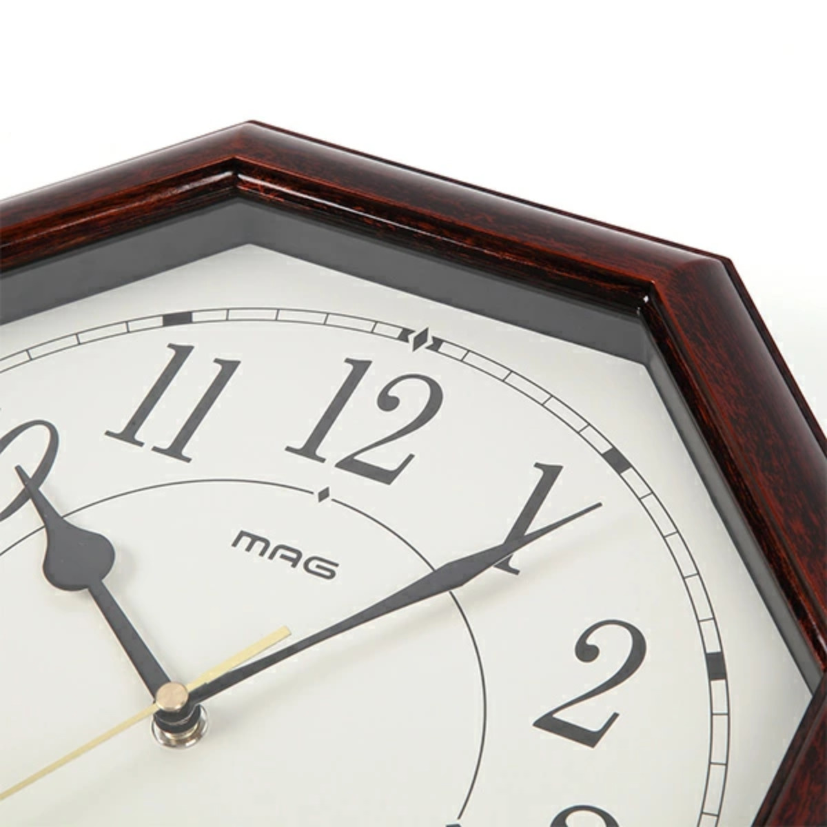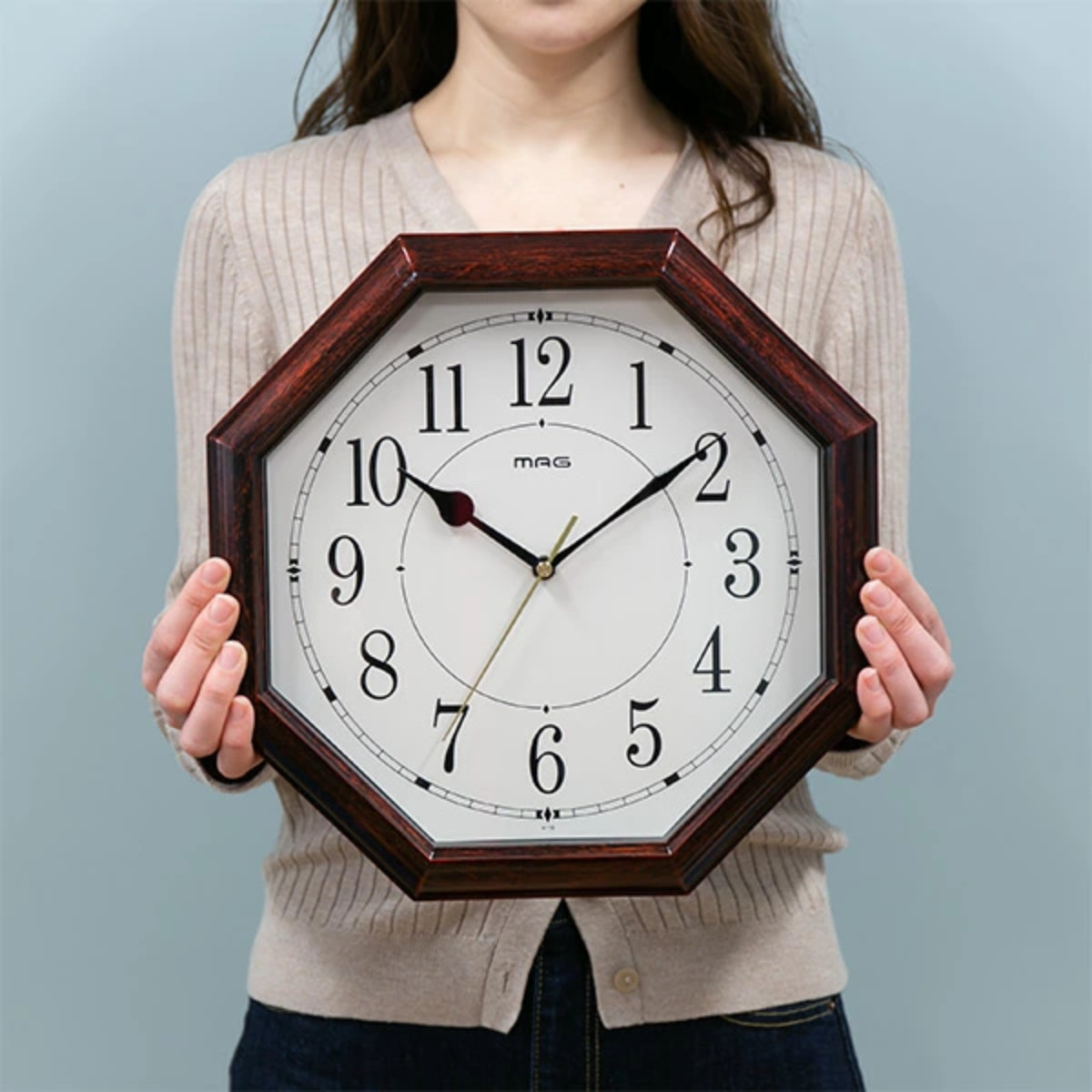 どこか懐かしいレトロな雰囲気を感じる八角形の掛け時計です。八角形は「八」の字が末広がりの形をしていることから昔から縁起がいいとされ、風水では八方位を守って運を引き寄せ、身を守ることができる形と考えられています。