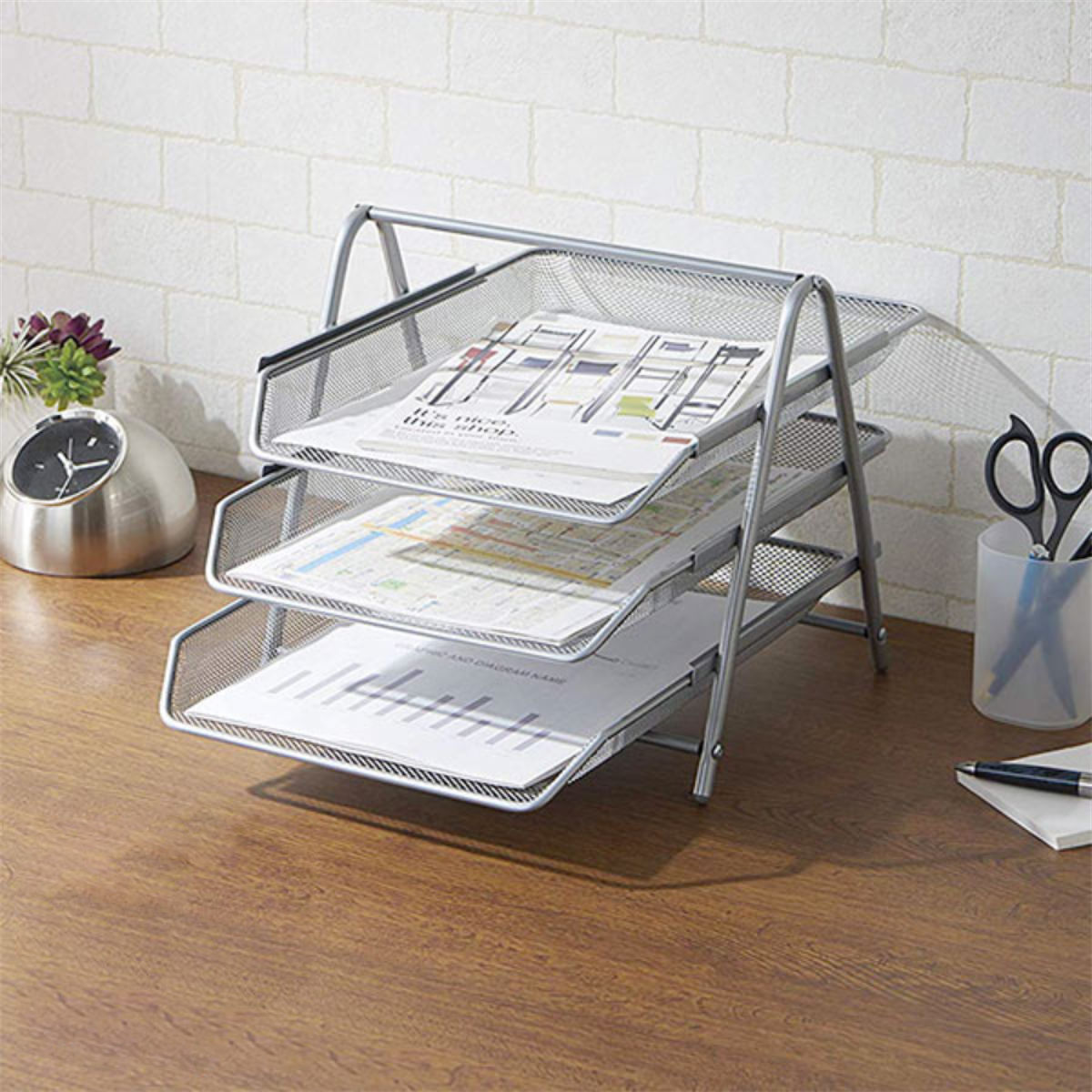 ファイルトレー 3段 A4サイズ 縦 レターケース スチール製 ( ファイルケース ファイル ケース トレー A4 サイズ トレイ 収納 書類 デスク収納 卓上 卓上収納 書類収納 保管 収納ケース レタートレー スチール プリント おしゃれ ) 【シルバー】