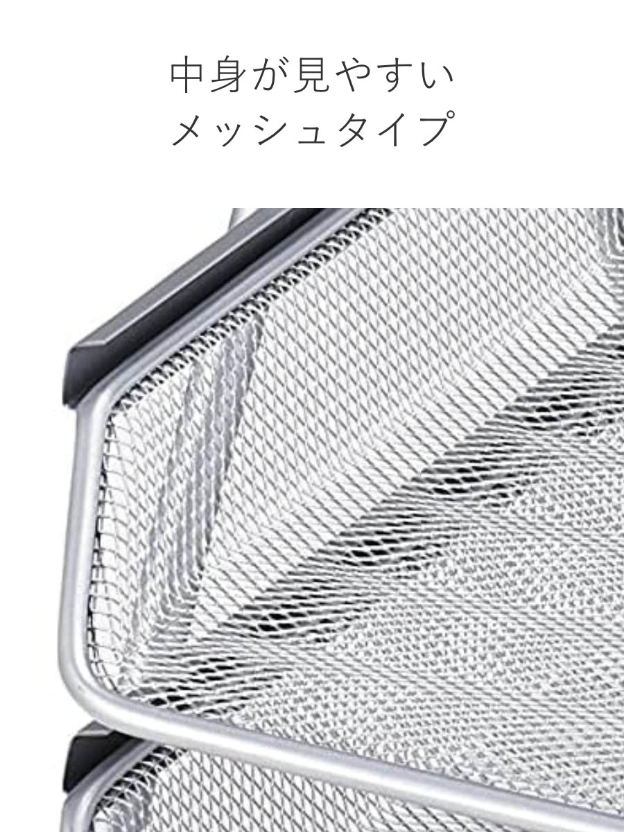 トレー部分は丈夫なスチール素材のメッシュ仕様です。中身が見やすく、通気性にも優れています。