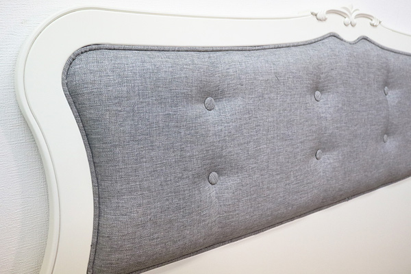 ロココ調デザインの優美さと繊細さ、流線の美しさを活かしたセミダブルサイズのベッドです。手彫りの彫刻や猫脚が洗練された上品な印象を与え、フェミニンな空間を演出してくれます。