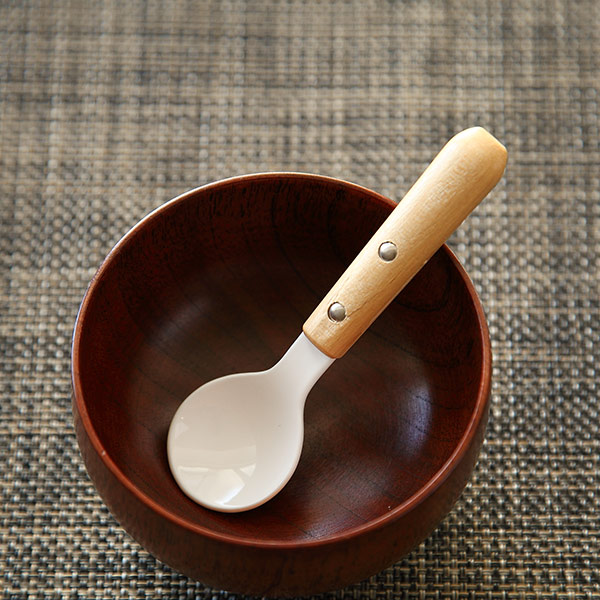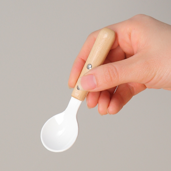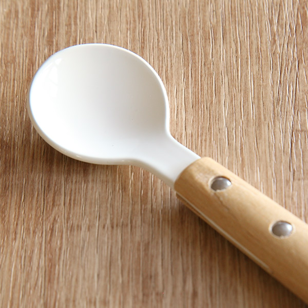 スプーン 12cm ナチュラルブラン Natural Blanc ミニスプーン ステンレス製 ホーロー 天然木 日本製 同色5本セット ( ヒメスプーン 洋食器 カトラリー 琺瑯 アイス デザート おしゃれ かわいい 木目 ナチュラル 白 木 )