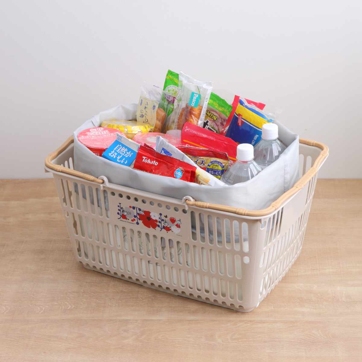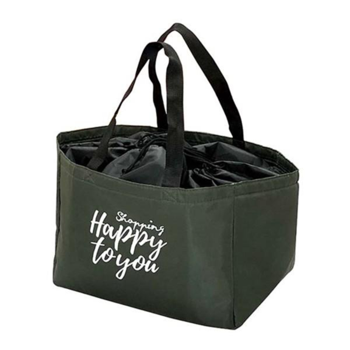 スーパーでのお買い物に便利なエコバッグです。買い物の精算時にレジカゴにセットすれば荷物を移し変える必要もなく、そのまま持ち帰ることができます。
